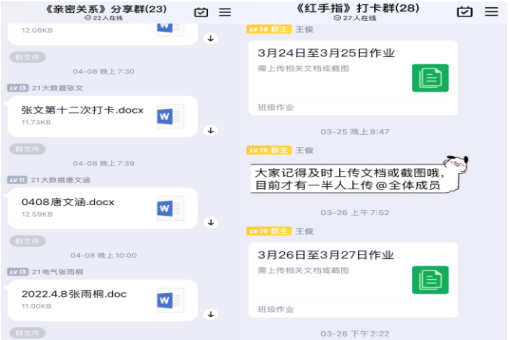 活动组设立四个读书打卡群,每个群约20名同学,大家共同精读一本书,且每隔两日提交一次心得感悟。同学们借此机会回归读书,养成边读书边思考的好习惯,及时记下感慨与感悟,并在群中畅所欲言,以书会友。参与人数共达85人,几乎所有同学能够按时打卡,交流心得,活动结束共收到2000余份心得。每一份心得都是一个个心灵的交流,都是一次次灵魂的碰撞。