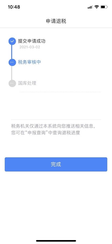 (八)提交成功后,待税务审核和国库处理后,退款即可到账。