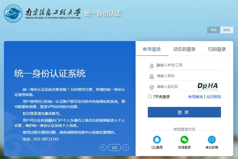 2、使用南京信息工程大学统一身份认证账户密 码登录