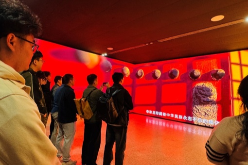 本次展览汇集苏浙皖沪四地千余件档案珍品,以“铁军成长”“根据地建设”“党建引领”三大篇章,通过文献、影像、互动展陈等形式,重现新四军在长三角的抗战与建设历程。同学们在珍贵档案前驻足学习,从“烽火家书”“游击战智慧”等展项中感悟铁军精神与军民深情。同学们在全息影像、虚拟互动等数字展陈设备前驻足体验,在“烽火家书”朗读亭前感悟家国情怀,在“制胜之道”互动区探寻新四军游击战的智慧密码。泛黄的文件、斑驳的实物背后,是新四军将士不畏强敌、向死而生的英雄气概,是军民同心、众志成城的鱼水深情。大家一边聆听讲解,一边交流感悟,深刻认识到新四军精神不仅是历史的宝贵遗产,更是新时代砥砺前行的精神灯塔。