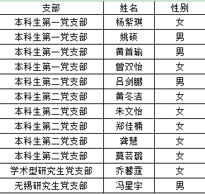 各位同学:经学生本人申请、支部大会讨论,以下12人拟按期转为正式党员,现予以公示,公示期为2025年11月20日—2025年11月26日,公示期为五个工作日,如有问题请与学办刘老师反映,联系电话58235761。