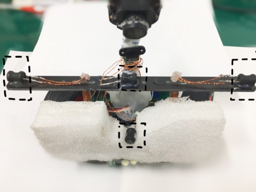 同样的我们也可以看到下图中我们运用了不止一个电感来检测电磁信号,我们可以把这四个电感分为左电感、中电感、右电感以及竖直电感,此处就不细述他们具体的作用了,但我们可以知道的是,通过他们检测到的信号能更加精准地确定小车处在赛道的具体位置,也可以根据左右电感的差值来确定小车应该如何调整自身的位置。
