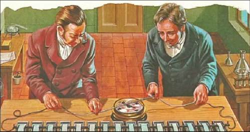 奥斯特与他的助手在完成奥斯特实验