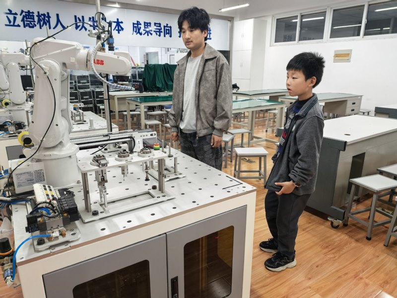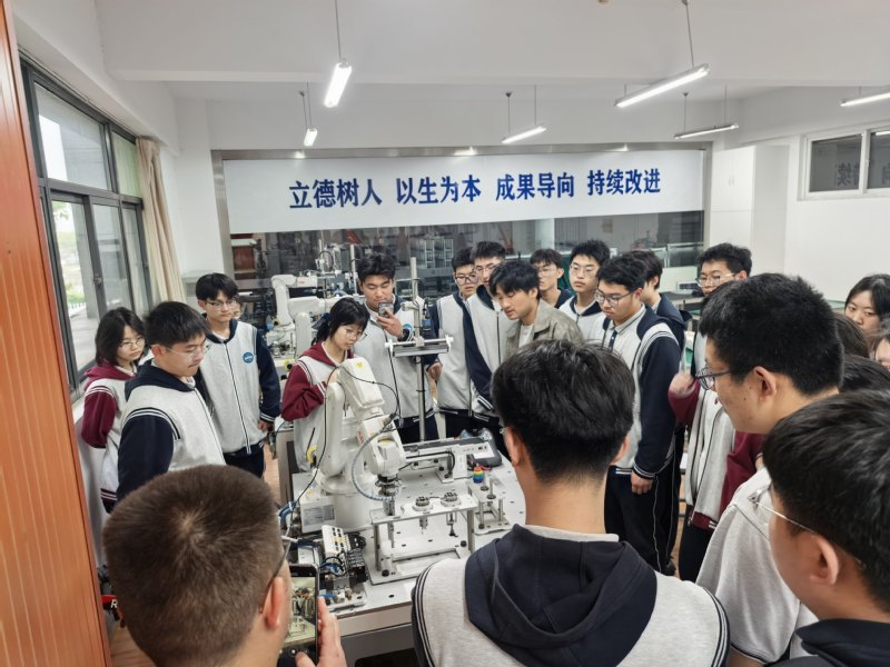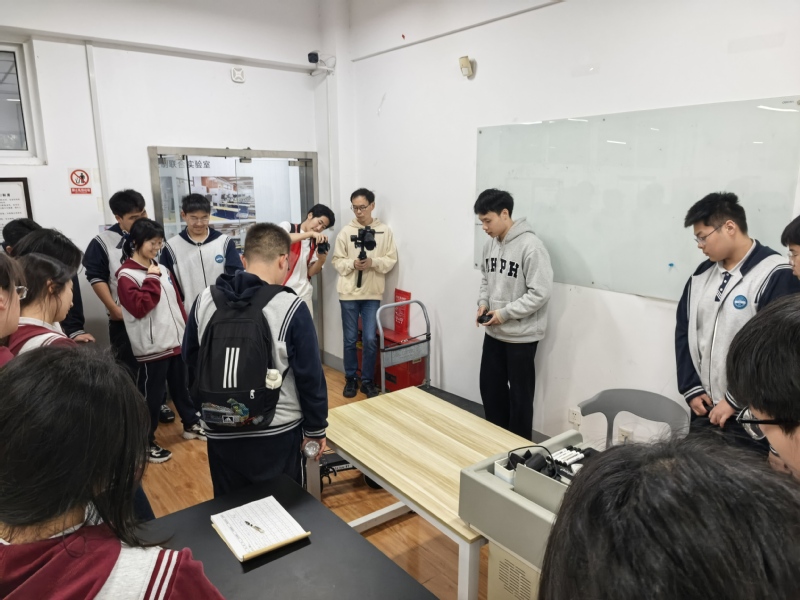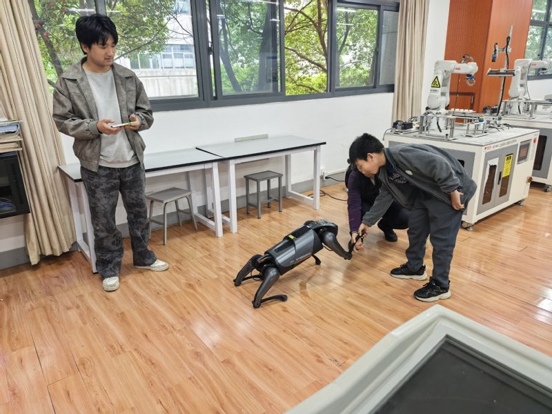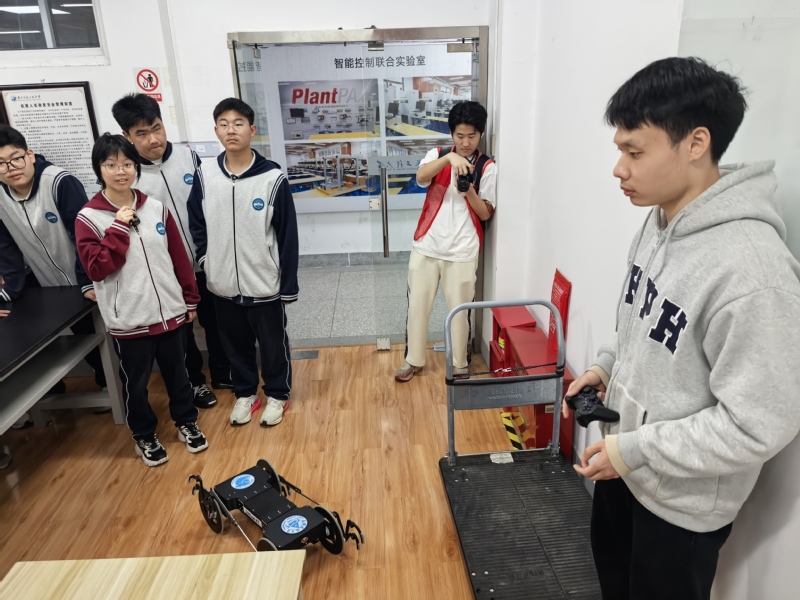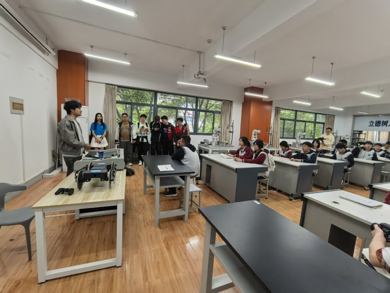 4月11日上午,江宁高级中学学生及周边社区居民一行三十余人来到基地参观学习。在活动中,研究生志愿者卞程和薛杰为大家进行了现场讲解与演示,重点展示了爪轮机器人、工业机器人以及机器狗等多种智能装备。通过生动直观的演示和互动讲解,参观人员近距离了解了各类机器人的结构特点、运动方式及应用场景,对智能机器人技术在工业生产与日常生活中的作用有了更加深入的认识。本次活动不仅增强了公众对机器人技术的兴趣,也进一步促进了科普教育与社区交流。