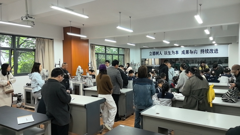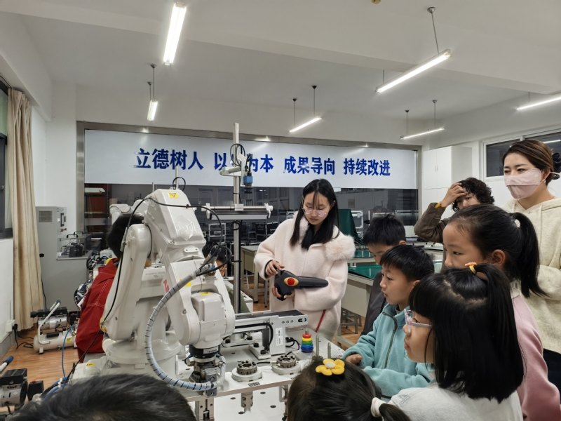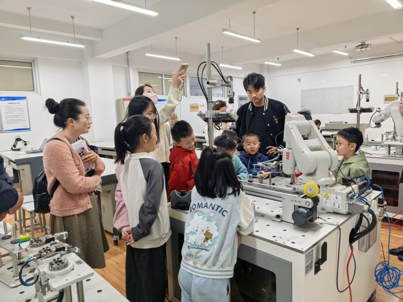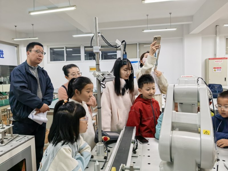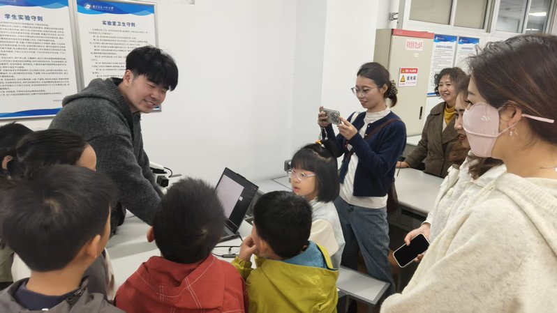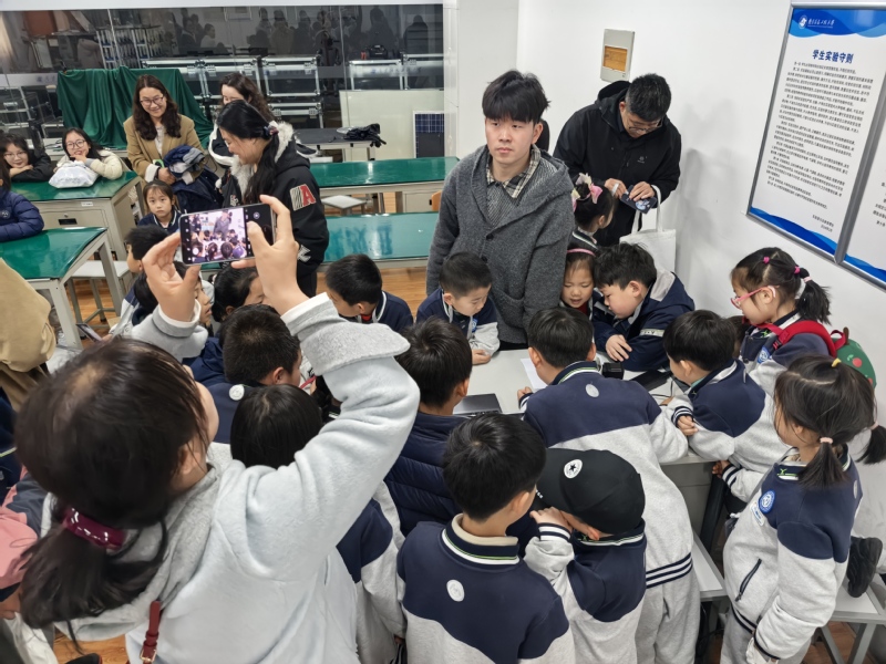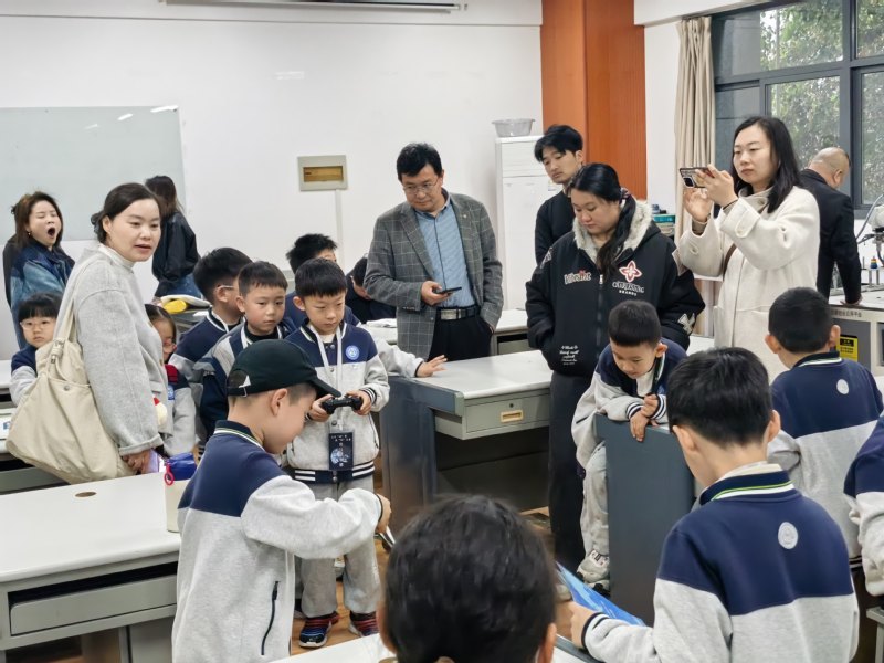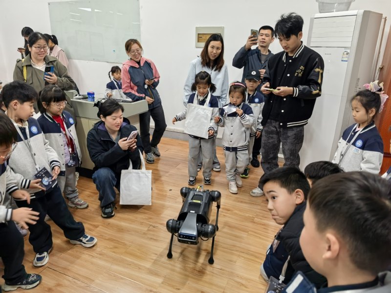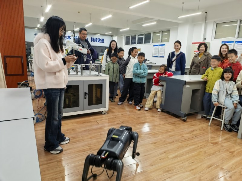 4月12日上午,高新实验小学及育英二外学生一行五十余人来到基地参观学习。活动中,研究生志愿者张乔森、杨梦婷和薛杰为同学们进行了精彩的讲解与演示,展示了爪轮机器人、工业机器人、书法机器人以及机器狗等多种智能设备。通过近距离观摩和互动体验,同学们对机器人的结构原理与应用场景有了更加直观的认识,激发了对科技创新的浓厚兴趣。本次活动进一步加强了科普教育实践,营造了良好的科技学习氛围。